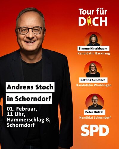 „Wir brauchen eine starke Sozialdemokratie in Baden-Württemberg. Es ist wichtig für dieses Bundesland. Wir brauchen Stabilität, Fortschritt, Verlässlichkeit – und das wird es hier nur mit Andreas Stoch und der SPD geben. Dafür kämpfen wir gemeinsam.“